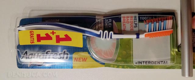 Nu e electrică sau electronică, de-alea folosesc doar burghejii şi leneşii, e o periuţă aparent normală, dar… altfel. Am cumpărat-o întâmplător, aşa cum îmi cumpăr fiecare periuţă de dinţi, pentru că ştiu că n-o să aibă viaţă prea lungă şi atunci nu mă stresez prea tare.