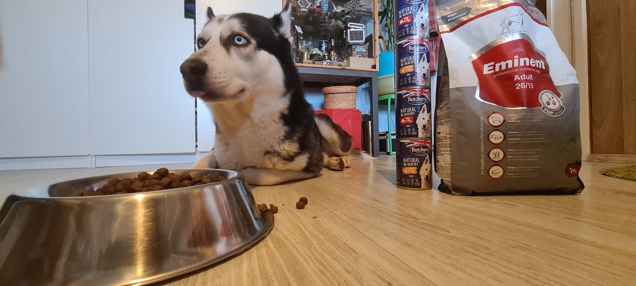 Ăsta e cățelul meu. Cică eu eram foarte pretențioasă la mâncare în copilărie, dar nu în sensul că mâncam doar anumite mâncăruri, ci că nu mâncam aproape deloc. Ciuguleam. Bobiță al meu nu face de-astea. Dar e greu să găsim ceva care să-i placă pe termen lung. Primul sac de mâncare specială pentru rasa lui (12 kg de hrană uscată) i l-am luat când era încă micuț și cred că ne-a ținut mai bine de un an!