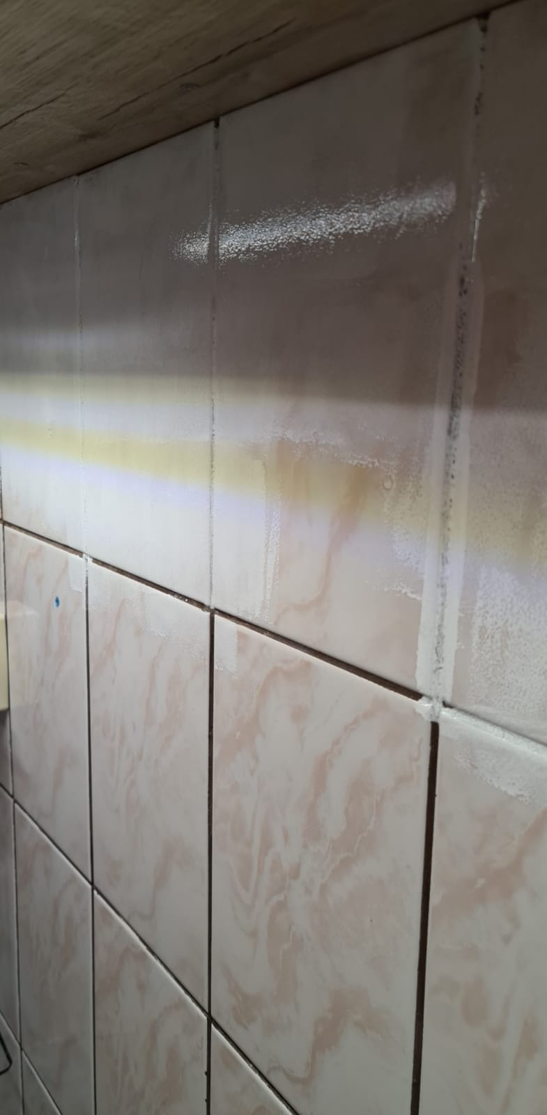 Nu încerca să umpli spațiul dintre plăcile de faianță cu chit de rosturi! Am încercat eu, în speranța că fac și un pic de economie la vopsea, pentru că erau destul de mari golurile și acolo intra destul de multă vopsea. Ce a ieșit? Niște rosturi umplute prost, pentru care am pierdut foarte mult timp. Dar până la urmă e OK și așa, nu mă plâng, doar vă atenționez să nu faceți ca mine. Oricum, e foarte puțin probabil să mai aibă cineva rosturi crăcănate, din ciment, ca ale mele…